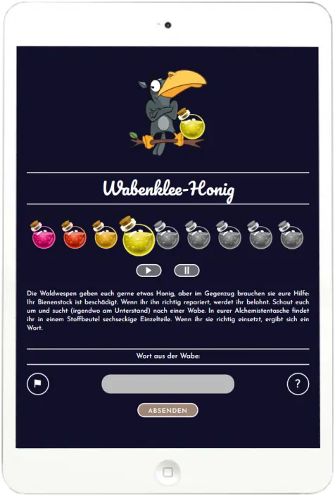 Auch daran haben wir gedacht – jede Aufgabe kann mit einem kleinen Flaggen-Symbol übersprungen werden. So hängt ihr nicht fest, sondern bekommt direkt die Karte zur nächsten Aufgabe angezeigt.