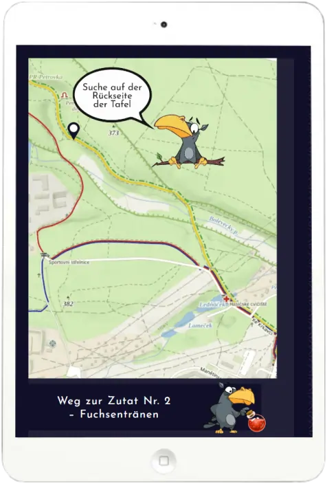 Es kann euch vor allem navigieren – es zeigt euch eine Karte mit dem Punkt, zu dem ihr gehen sollt (Stage/Aufgabe). Auf der Karte seht ihr während des gesamten Spiels ein Symbol, das eure aktuelle Position anzeigt. Wenn ihr in die Nähe einer Stage kommt (ein Ort mit einer Aufgabe), erscheint automatisch die Aufgabenstellung auf dem Tablet – samt weiterer Anweisungen. Sobald ihr die Aufgabe gelöst oder übersprungen habt (mehr dazu später), zeigt das Tablet den nächsten Punkt. Das Tablet kann auch sprechen – ihr könnt euch also die Aufgabenstellungen als Audio anhören.