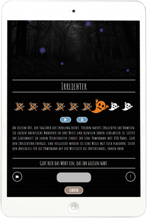 Bei der Buchung vereinbaren wir gemeinsam einen Tag und eine Uhrzeit für den Spielbeginn. Sollte das Wetter an diesem Tag nicht mitspielen, verschieben wir das Spiel problemlos. Am Start erhaltet ihr ein Leih-Tablet mit der Spiel-App und einen Koffer mit Ausrüstung – und los geht’s! Die Spielstrecke ist ein Rundweg, also kommt ihr wieder zum Startpunkt zurück. Dort warten wir schon und nehmen euch das Equipment wieder ab.